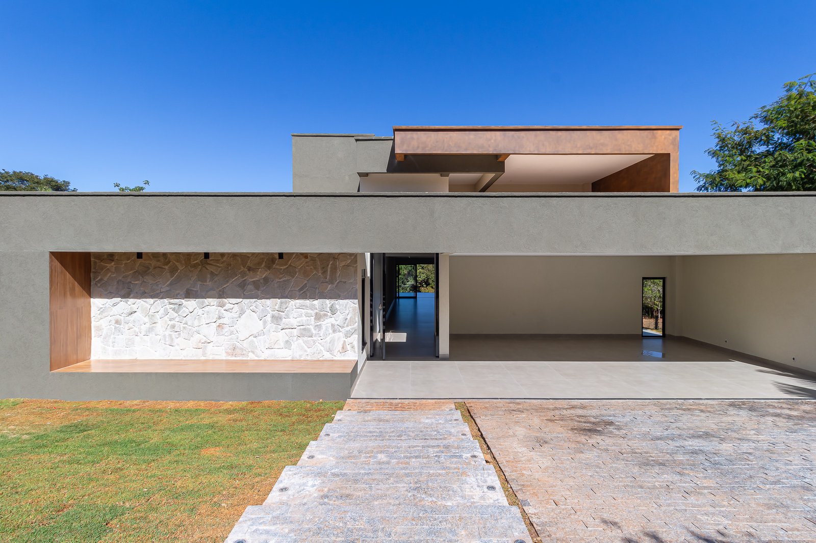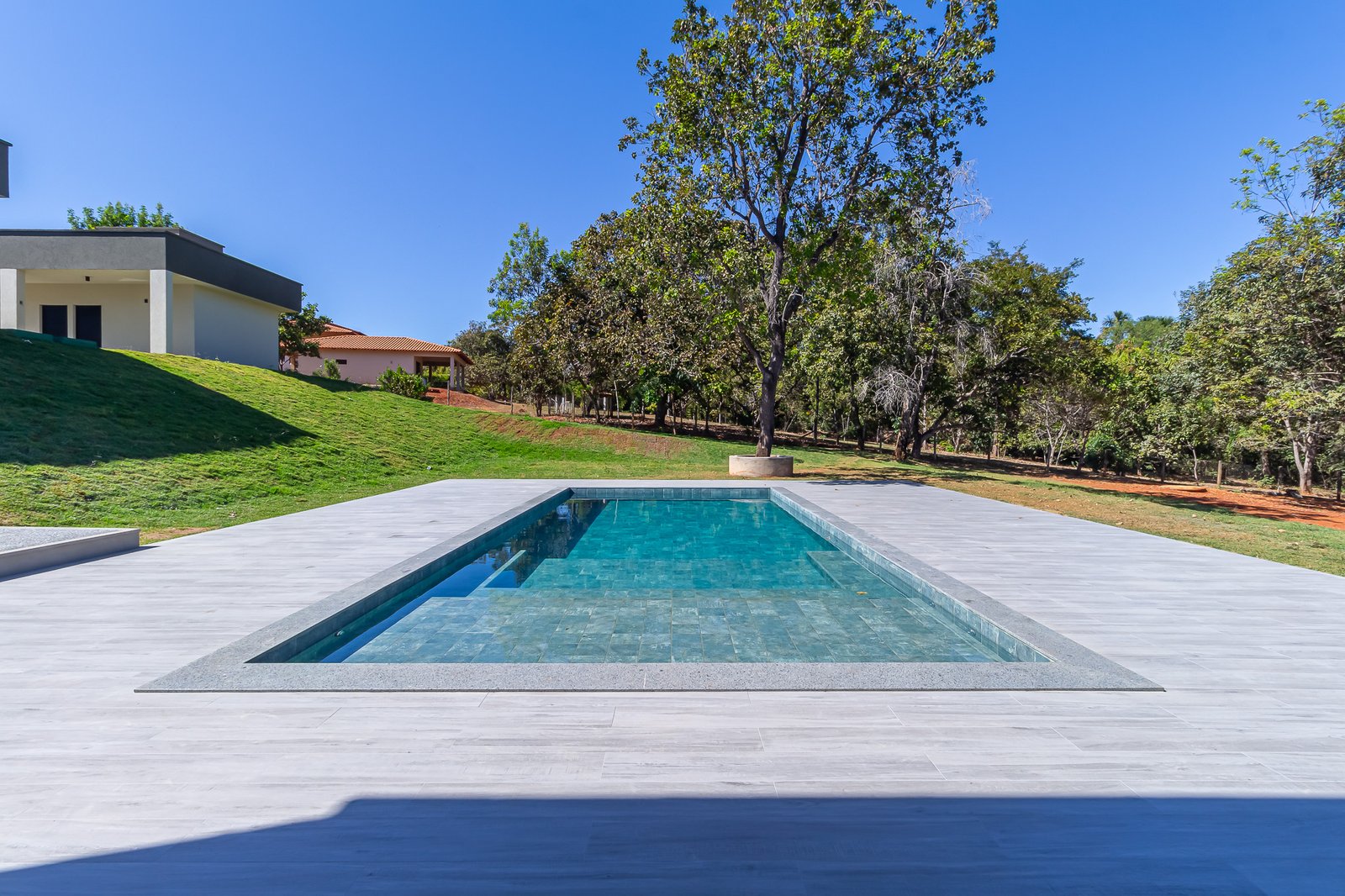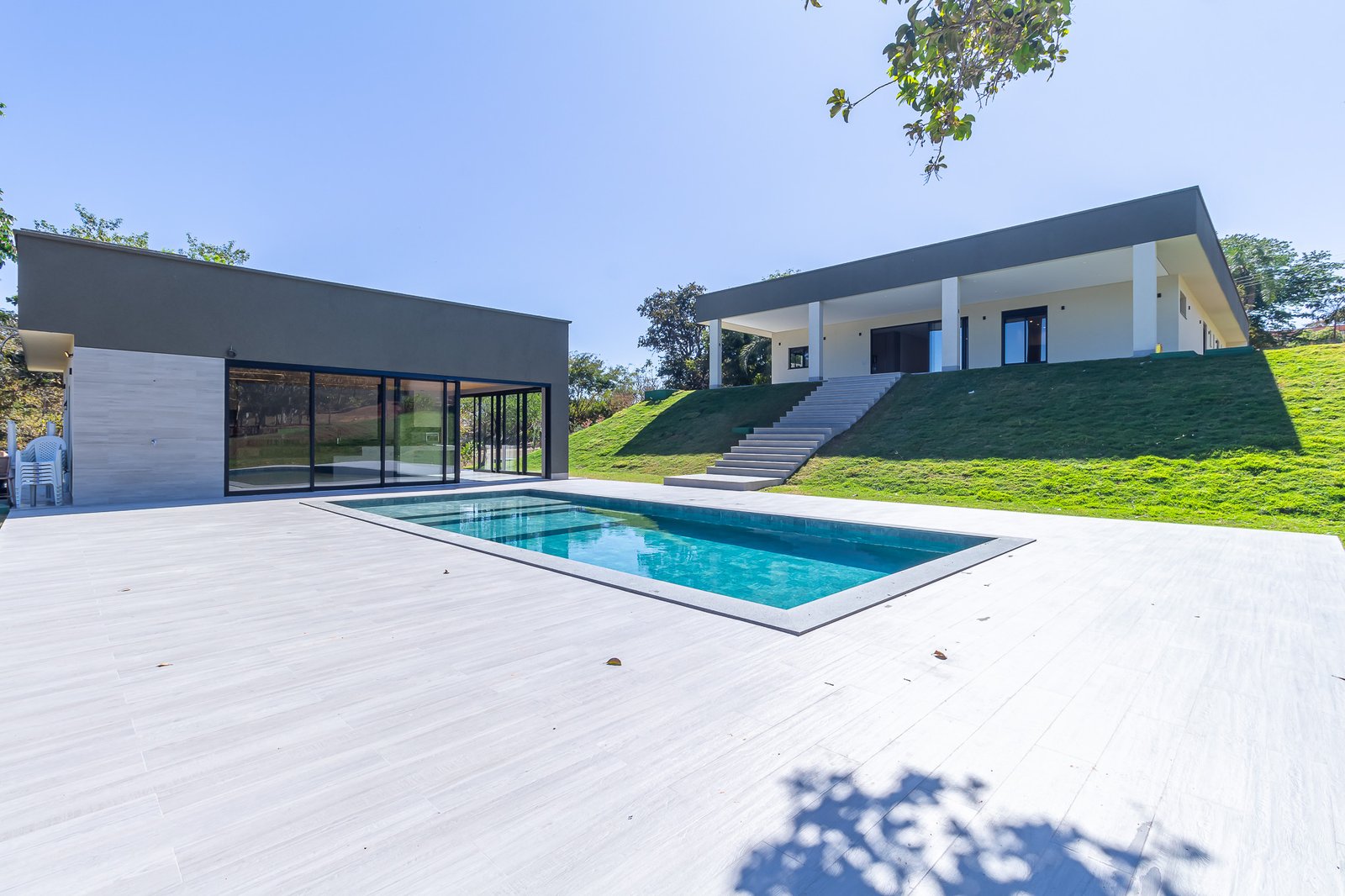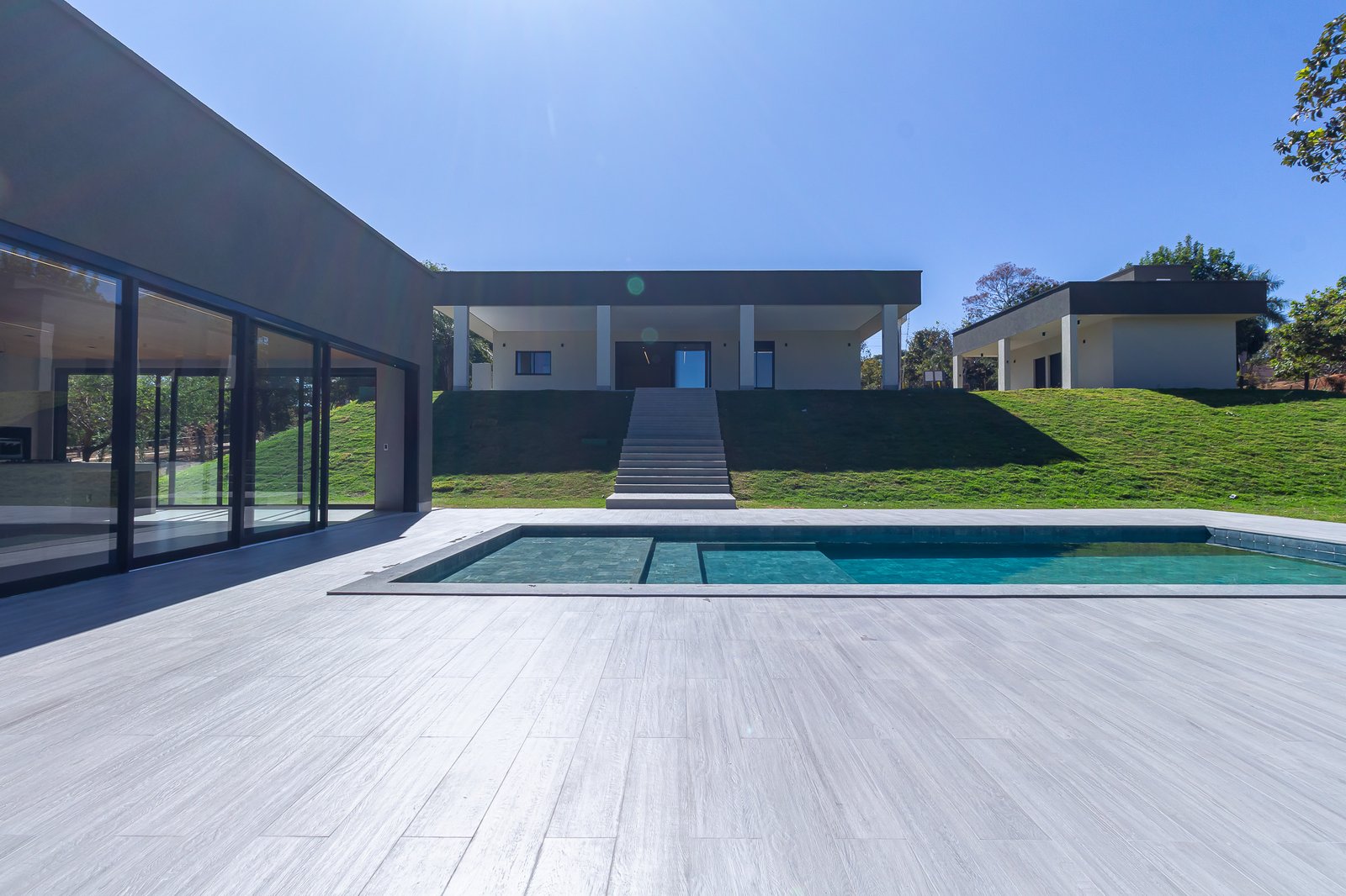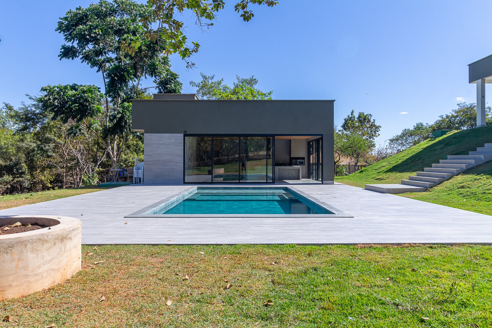 A casa CT foi construída em um condomínio de chácaras em Senador Canedo – GO. Possui uma área construída de 915m2 com 4 suítes na casa principal e 2 suítes auxiliares no Chalé. Uma ampla área de lazer com fogão a lenha, churrasqueira e uma bela piscina.