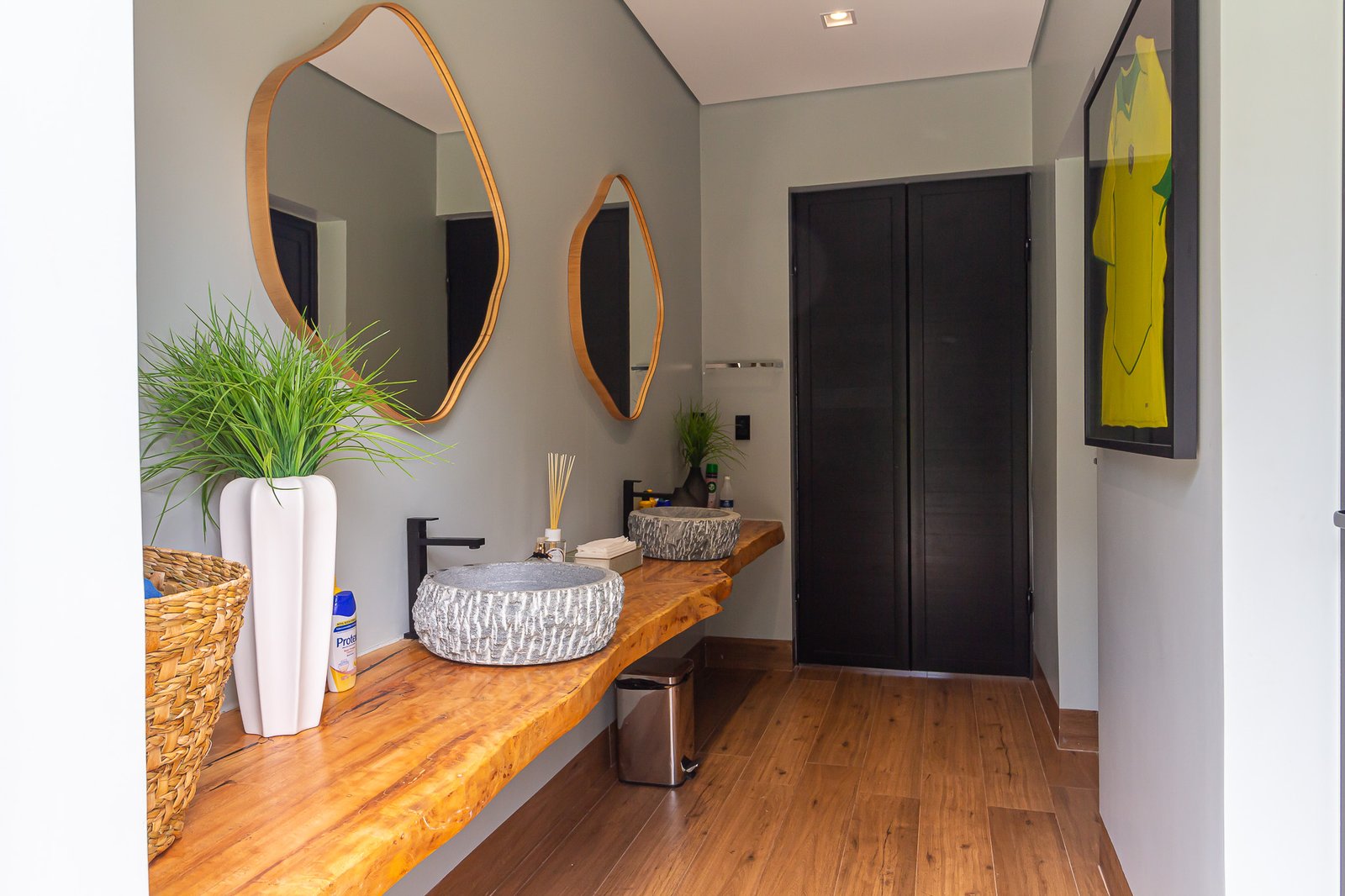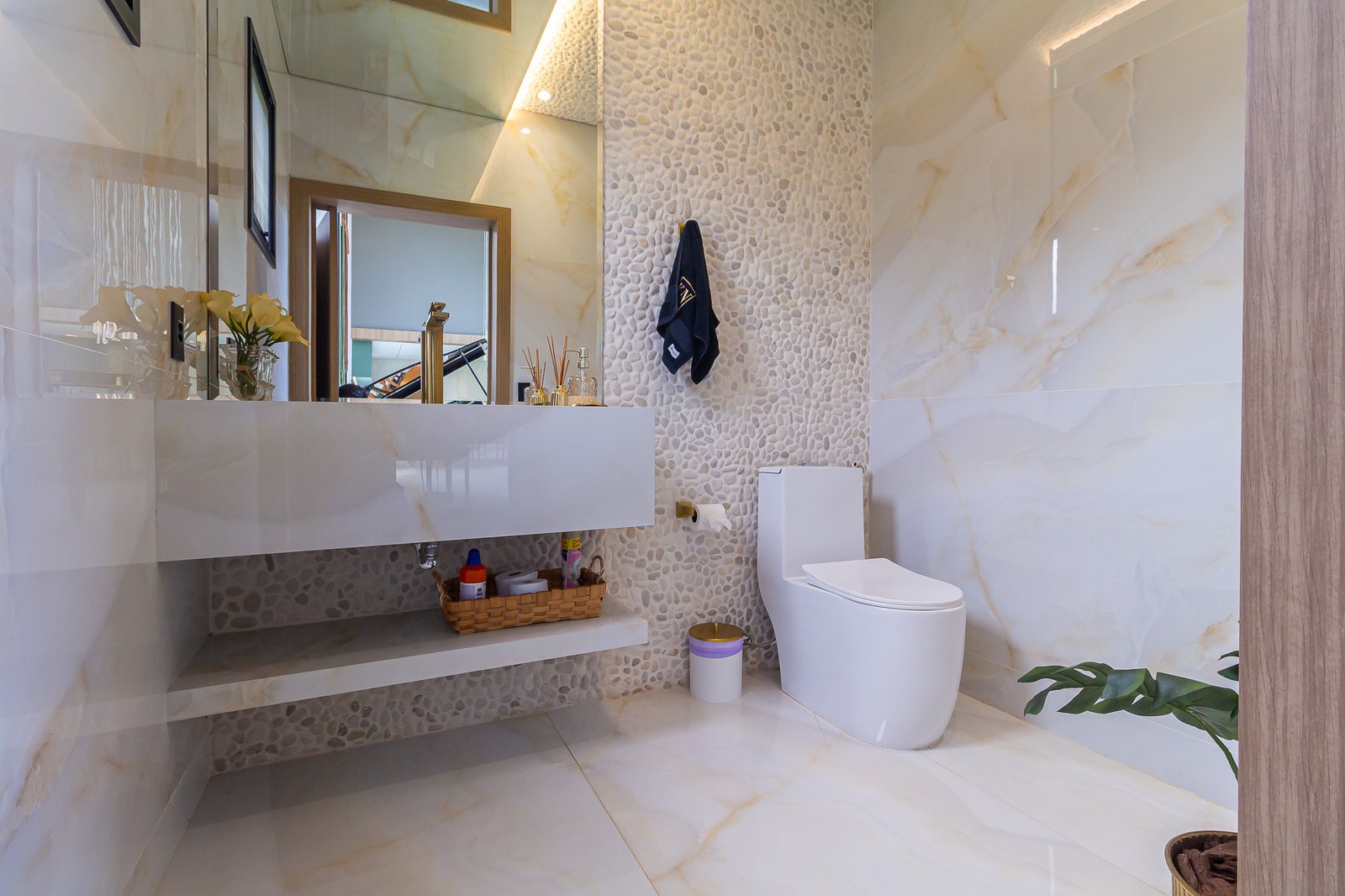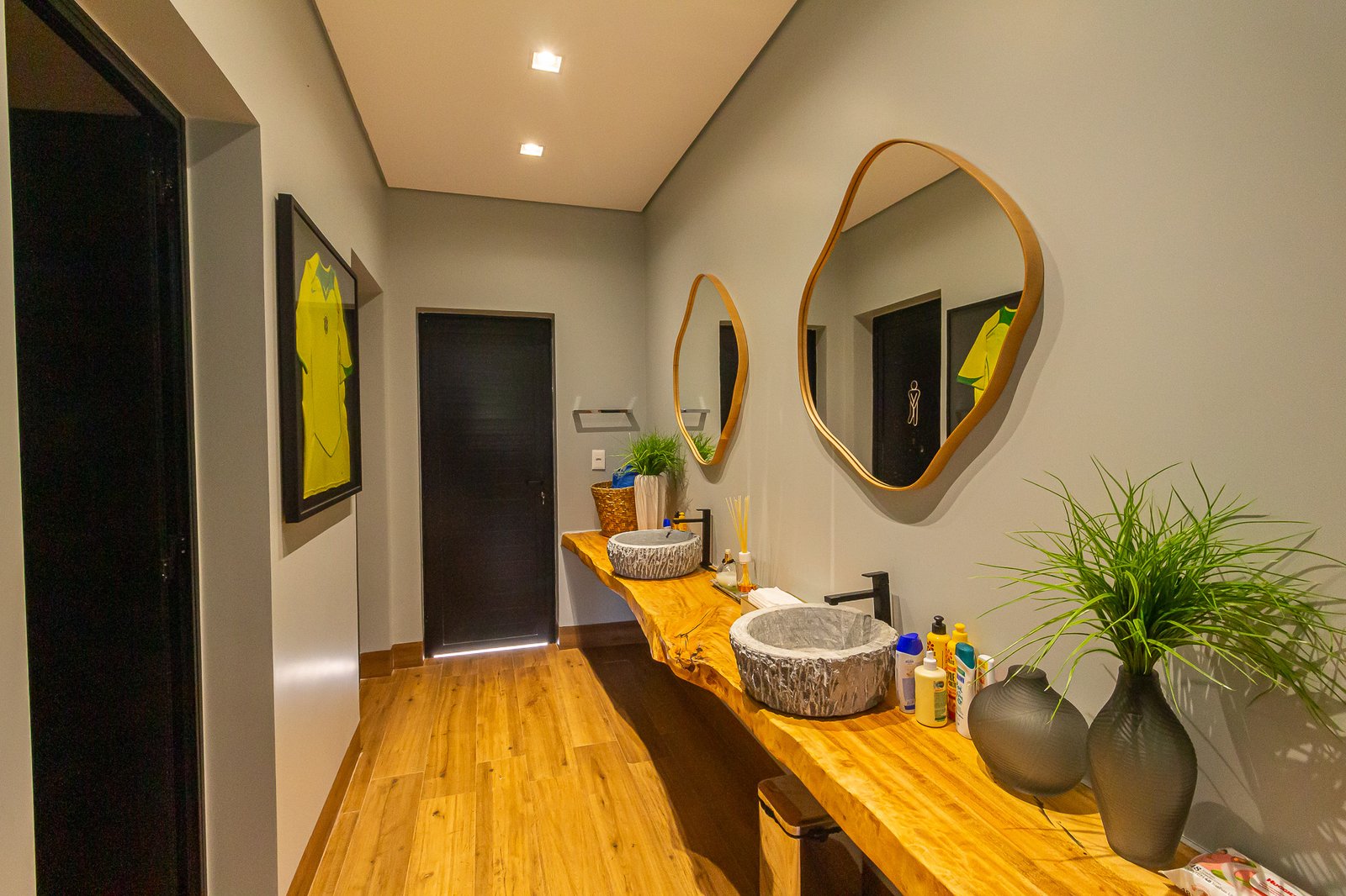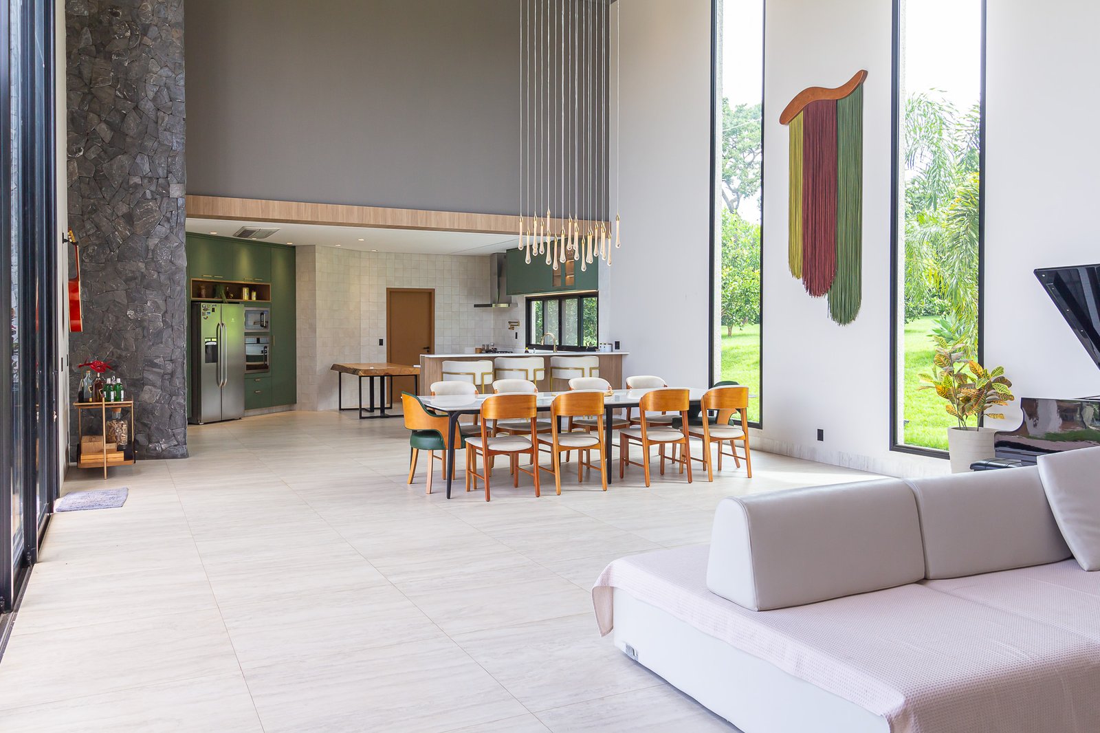 Uma característica marcante deste projeto foi atender ao estilo de vida dos proprietários, que prezam por receber bem. Para isso, criamos uma ampla e elegante área gourmet, equipada com uma piscina aquecida e um salão projetado para o máximo conforto. Toda a infraestrutura foi planejada para oferecer uma experiência única aos convidados, unindo sofisticação e acolhimento em cada detalhe.