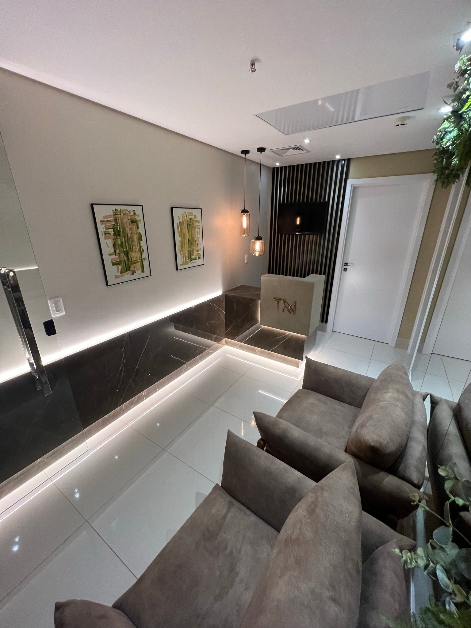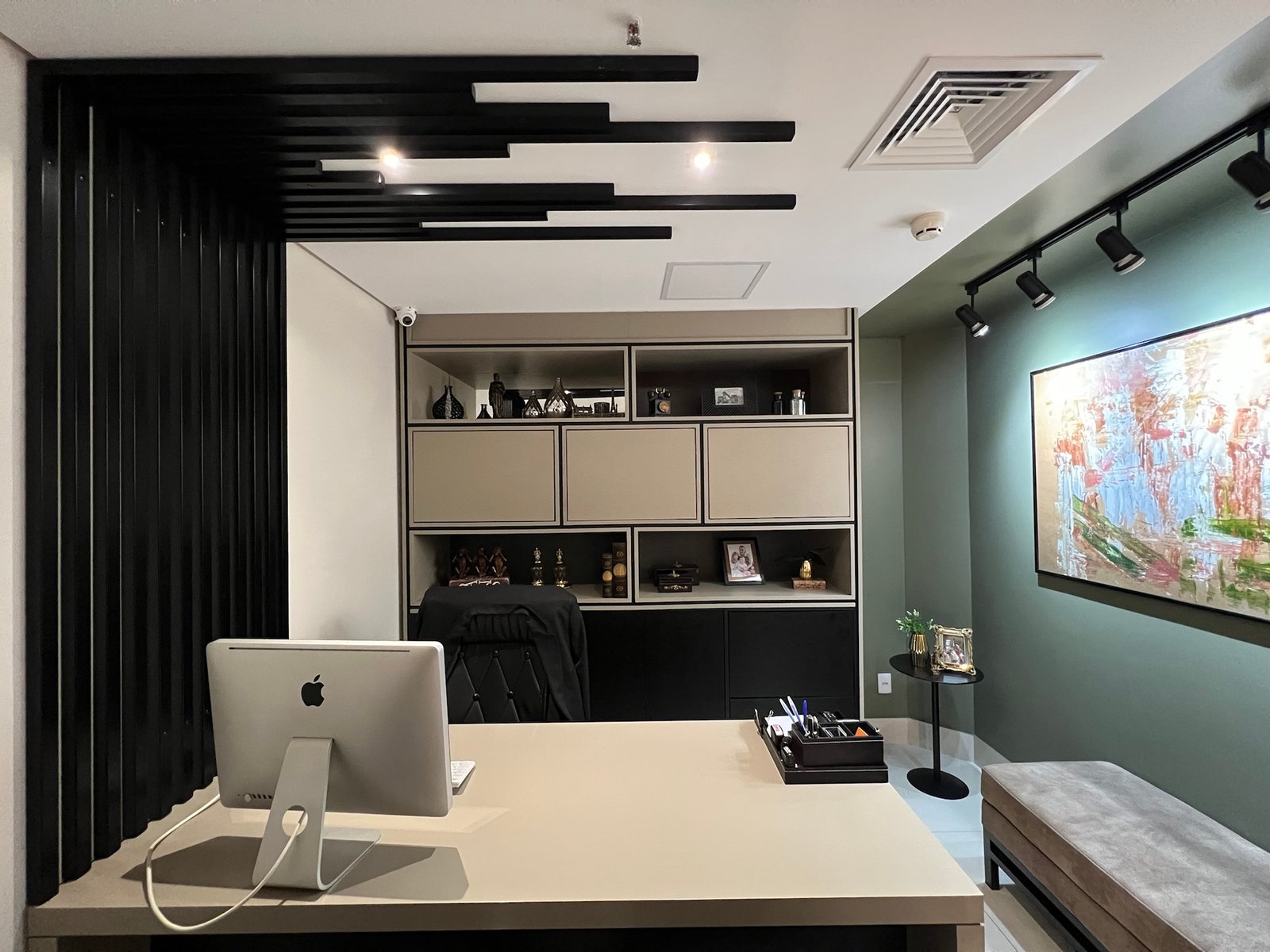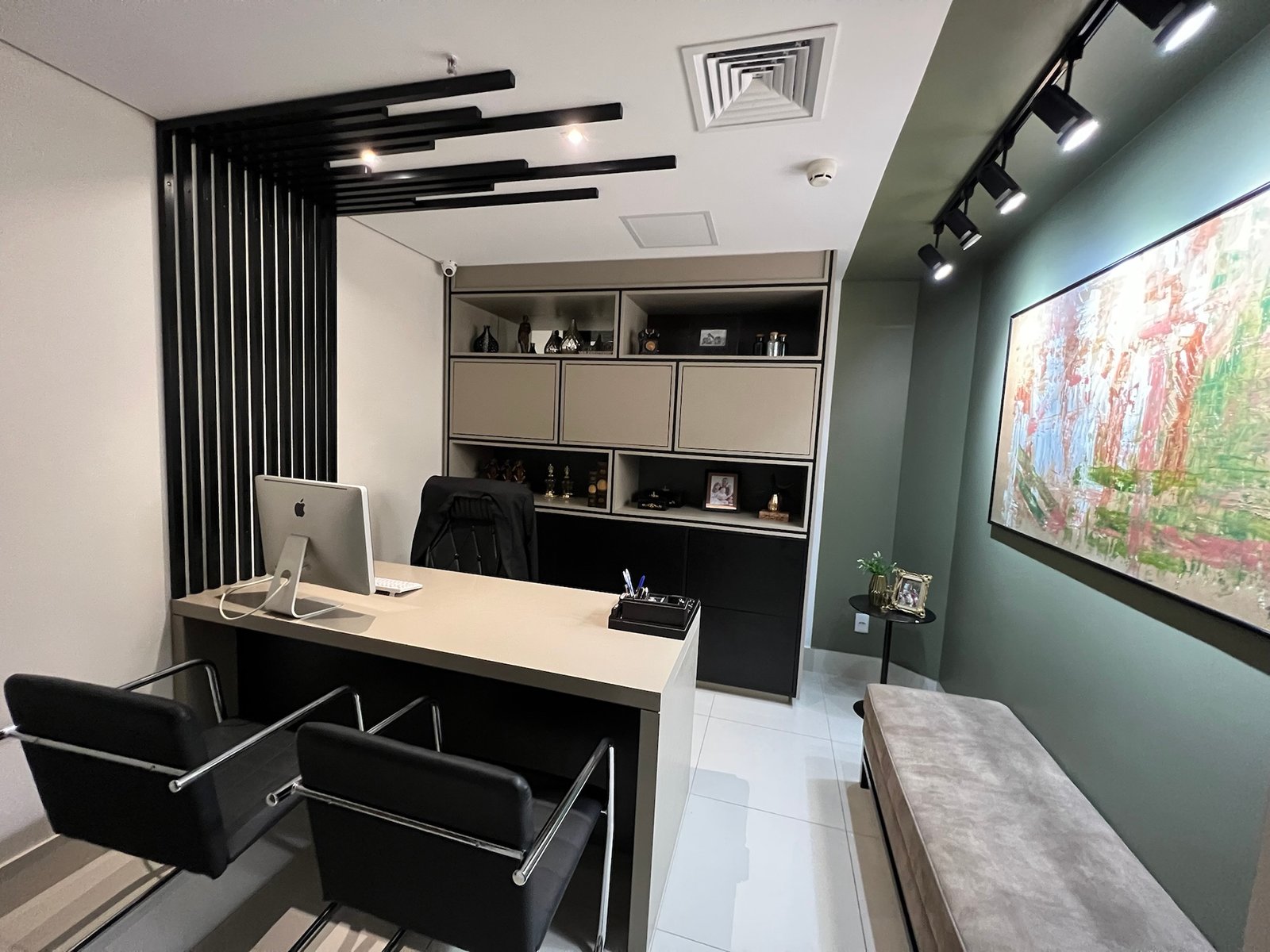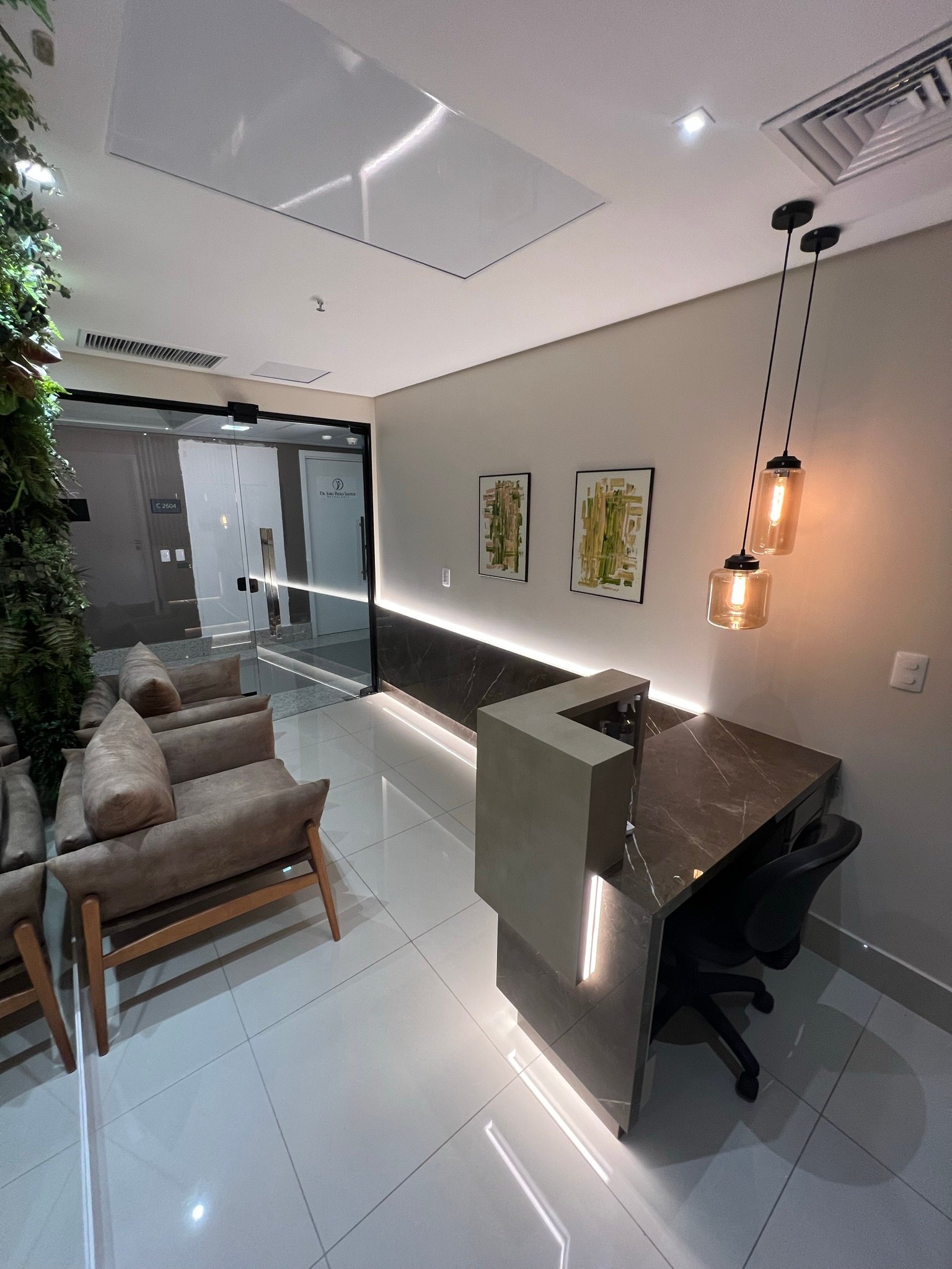 IMPONENTE! Nesse escritório de advocacia, desenvolvemos um projeto que passasse credibilidade e requinte, coerentes com a importância e a qualidade dos trabalhos e dos clientes dessa empresa. Além do desenvolvimento do projeto completo, com acabamento de alto padrão, também realizamos o acompanhamento e gerenciamento da obra e fornecedores.